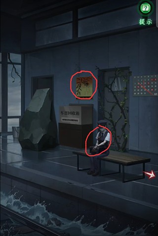 18、点击书柜最上面的一行露出的纸就可以得到信息“蝉能让石碎”,然后将刚刚获得的手臂放在候车室的人偶身上;