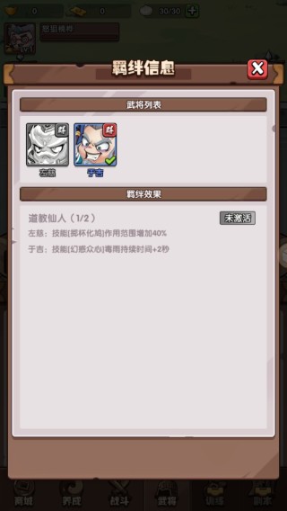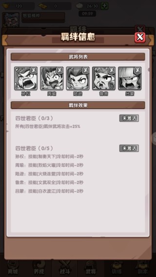 3、当刷到有羁绊的武将时,将他们一起上阵,会有特殊效果哦。