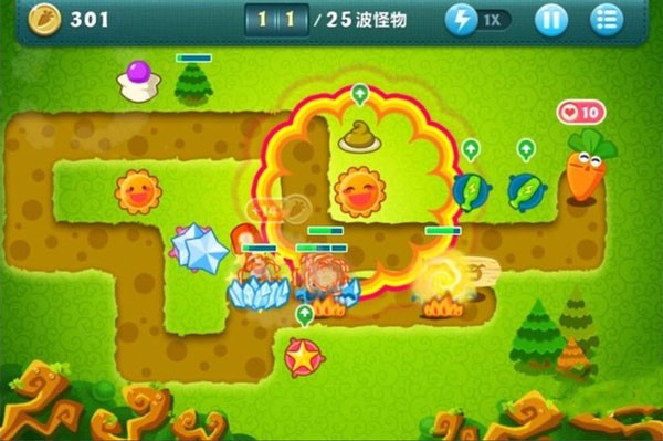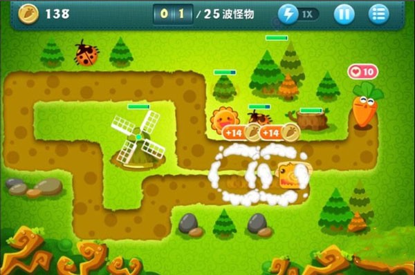 保卫萝卜1的游戏亮点在于玩家可以通过18种风格迥异的炮塔组合策略,例如减速控制的蘑菇塔、群体输出的太阳花、单体爆发型的鱼刺塔等,搭配地形障碍物清理后获得的隐藏资源,解锁更多战术可能。游戏还融入了趣味养成系统,例如收集怪物蛋孵化宠物,解锁隐藏剧情和成就。音效设计充满童趣,70多种滑稽怪物搭配搞笑声效,进一步强化了轻松解压的氛围。