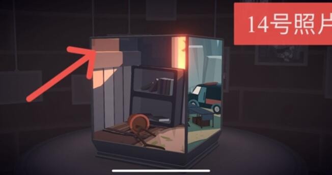 14、照片14在废墟的墙上,需要转一下视角,如图所示。