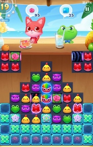 海滨消消乐的最大亮点在于场景化关卡与动态障碍物的结合,例如抓娃娃机关卡需要玩家消除指定次数换取抓取机会,而会跑的玫瑰花障碍需要玩家优先规划消除路径,游戏的策略玩法远超传统消除游戏。萌系画风与轻松音效的搭配,进一步强化了游戏的治愈感,夜间模式星空主题以唯美特效给玩家带来不一样的体验。