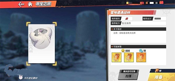 寻宝之旅可以分为突围推进城、功夫争霸赛、雪地遭遇战以及乱斗马戏团4个玩法,通过这4个玩法分别可以获得不同属性的能量石、不同等级的冒险笔记、进化印片以及强化卡。
