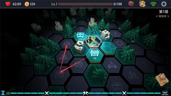 在规划线路的时候应该以宝箱、遗忘神殿(删除卡牌)、转换祭坛(变换卡牌)、地精商店(购买卡牌)等重要的事件格为目标以5步为一个周期进行规划。