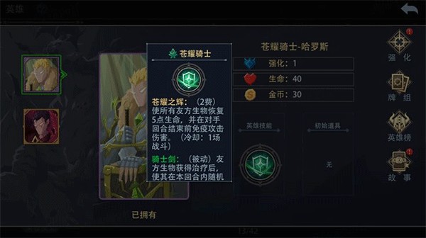 苍耀骑士是所有玩家解锁的第一个英雄,也是游戏的新手教程英雄