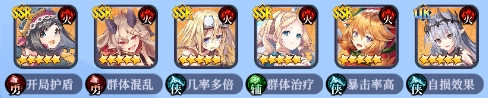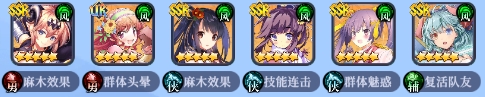 希尔达和安妮丝血量高,而且拥有优秀的续航能力,可以组成前排,奥拉拥有稀有的复活队友机制,朝日辅助能力强,雏田补足输出。