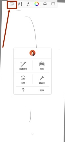 首先我们打开SketchBook,在软件的上方的第一个功能,就是我们用来创建新画布的一个功能。