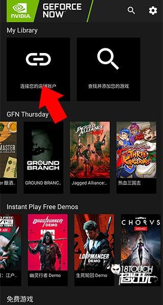 1、下载并打开geforce now软件,注册登录后来到下方界面,点击【连接您的店铺账户】按钮